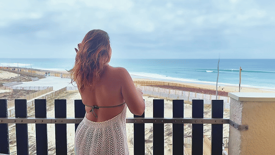 Alors tu vas adorer ! Je rentre de la plage et me dirige vers le balcon .